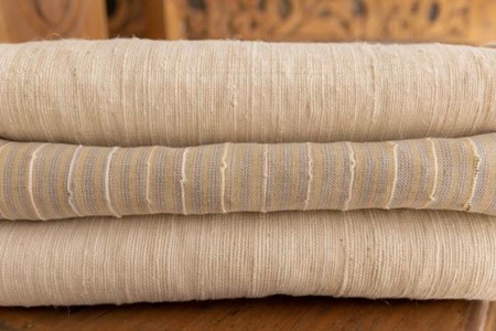 Pina is a fabric made from pineapple leaves. The fabric is completely vegan and sustainably produced. Pineapple leaves are a waste product and therefore sustainable to use for making fabric. The pineapple leaves are processed to eventually be woven into a luxurious fabric. To make the fabric completely vegan, the fabric is colored with natural dyes.