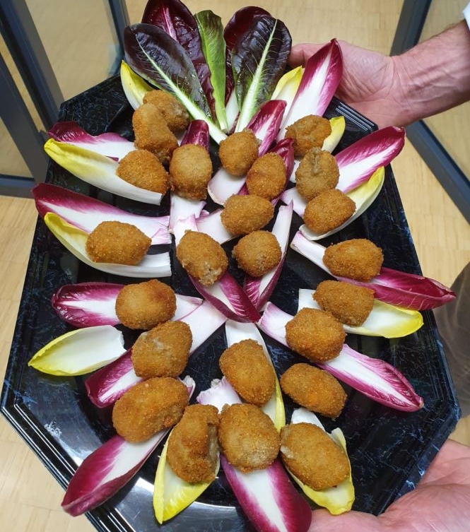The creation of an endive croquette was done in close collaboration with the Belgian endive grower Cools and the family company Gastronello, who specialises in the creation of all sorts of croquettes. The cutting edge innovative pressing techniques used to obtain the press cake fractions and juice under vacuum pressing are not yet available for large scale production. Therefore ILVO and Gastronello, under supervision of the Belgian Food Safety authority FAVV, collaborated to develop a small scale commercial production for the creation of the basic ingredients made from Belgian endive leaves for the croquettes.